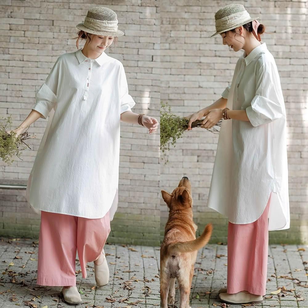 設計所在獨家高端限量系列 100%高密精梳長絨棉白襯衫中長版(S-L可選) Q230495