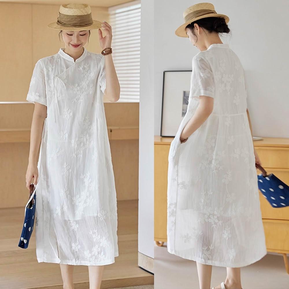 設計所在獨家高端限量系列 重工刺繡100%高支苧麻改良旗袍洋裝(S-L可選) QF2504392