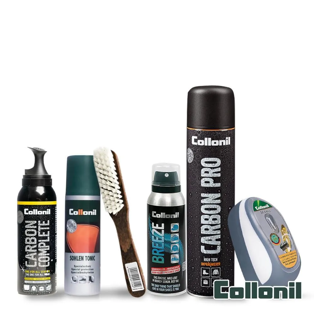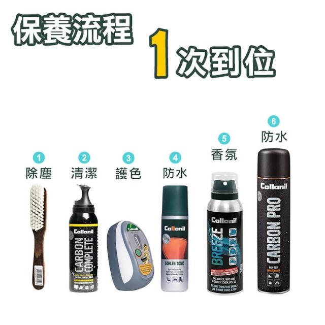 Collonil皮鞋防水6件組(碳泡沫保養劑+鞋底保養劑+除塵刷+多功能清新噴霧+防水噴霧+行動鞋油)