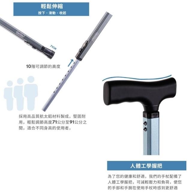 依利手杖 鋁合金拐杖/登山杖/單手拐(記憶型伸縮手杖 一鍵收合)