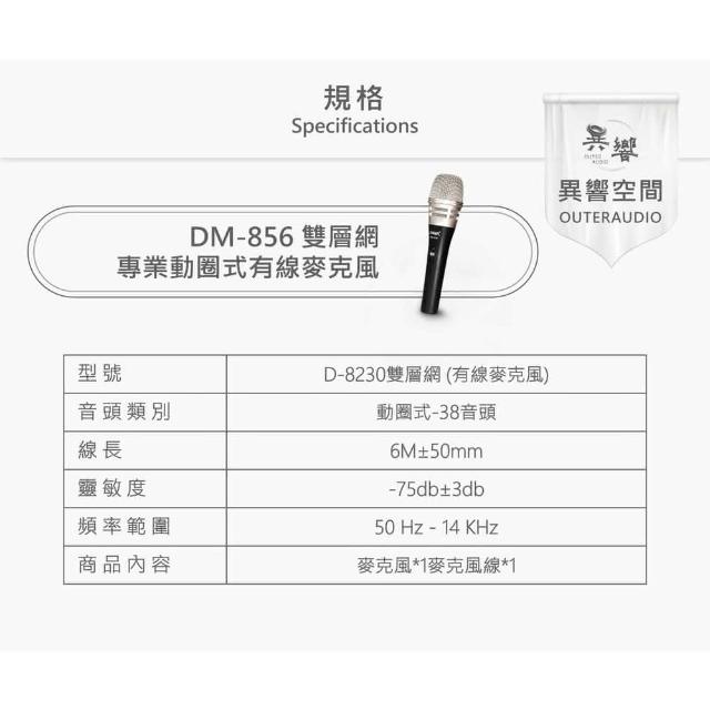 台灣 SUGARDm-856 頂級款 雙網罩 高靈敏 有線麥克風(台灣製造 含6M麥克風線/鐵盒收納盒)