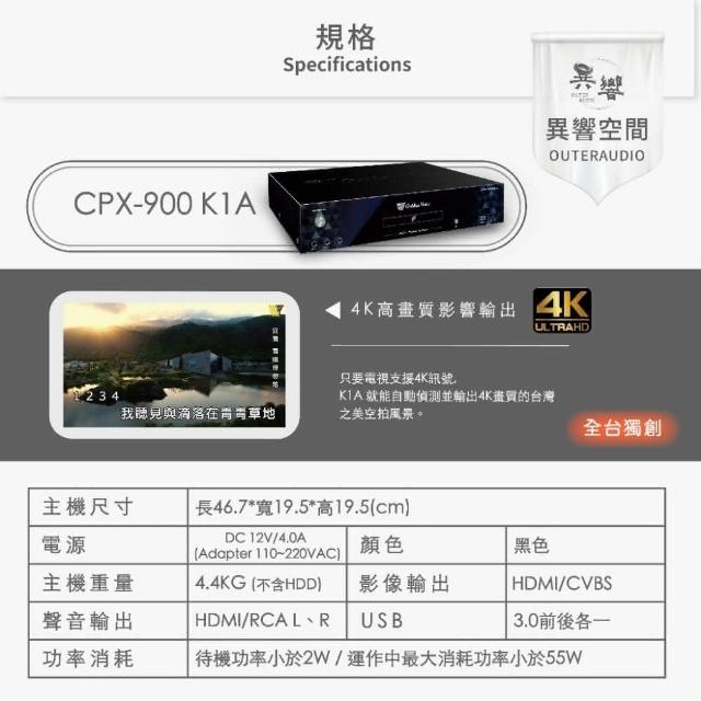 金嗓Golden Voice 金嗓電腦 CPX-900 K1A 伴唱機 最新旗艦款(含4TB硬碟)