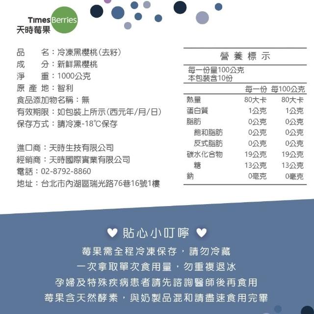 天時莓果智利冷凍黑櫻桃 1000g(✅農殘檢驗合格.莓問題)