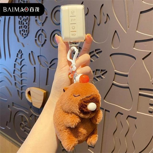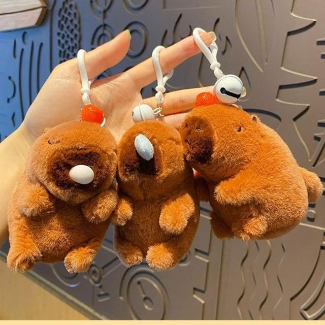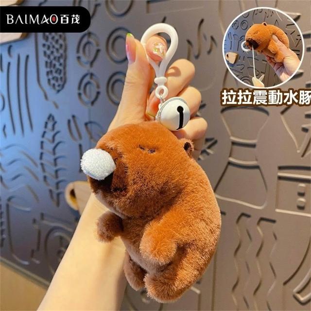 吊飾 卡通毛绒卡皮巴拉吹泡泡玩偶 水豚公仔鑰匙扣 掛包包娃娃 鑰匙圈 解壓減壓掛飾 掛件