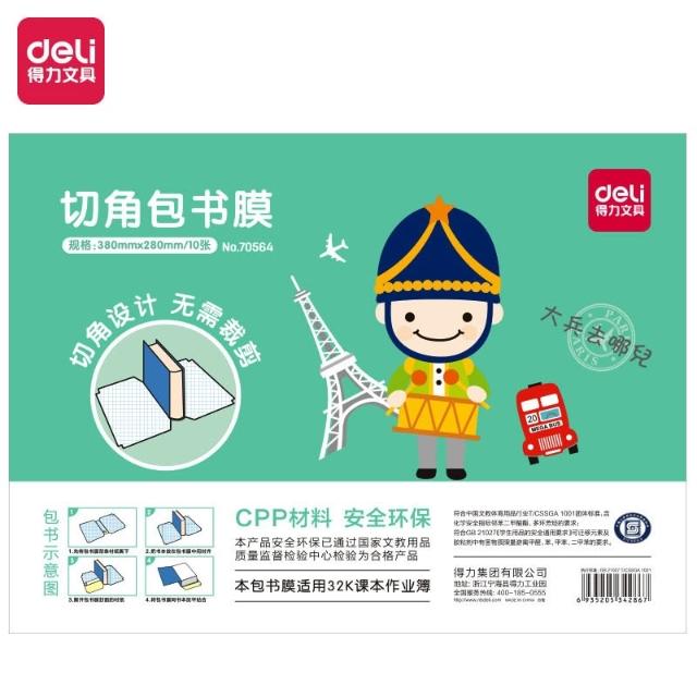 Deli 得力得力文具 加厚自黏包書膜 兒童學生課本作業本書套