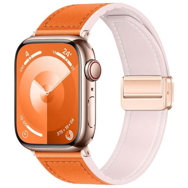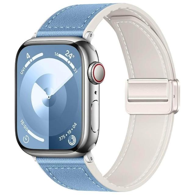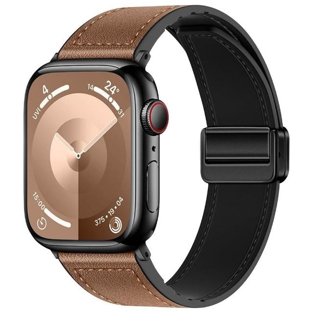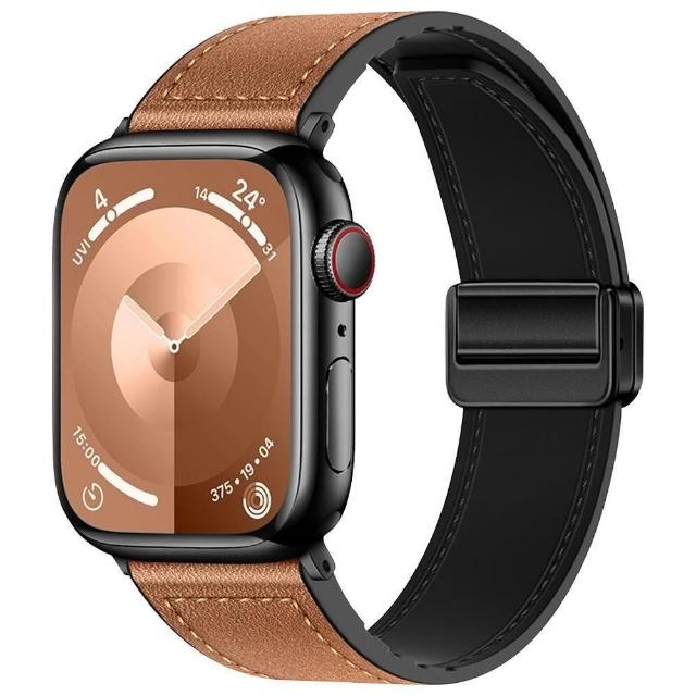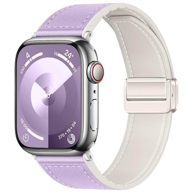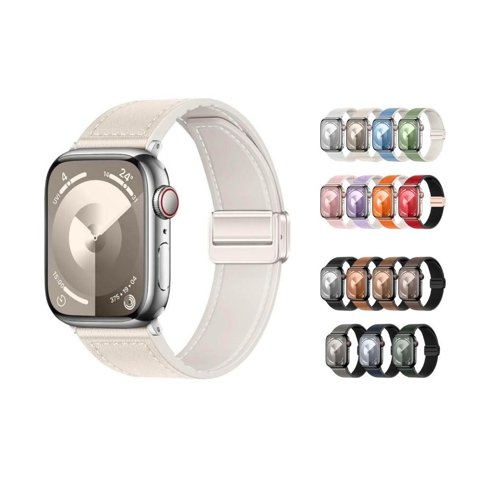 磁吸扣舒適皮革錶帶 適用 Apple watch 錶帶 10 9 8 7 SE 6 45 46 40 42 44 41