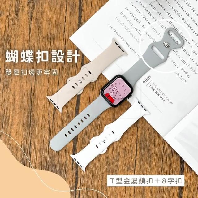 蝴蝶扣 矽膠錶帶 適用Apple watch 錶帶 10 9 8 7 SE 6 5 46 40 42 44 41 45