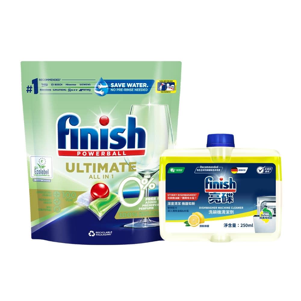 finish 亮碟洗碗機專用 零添加洗碗凝珠100顆+機體清潔劑(檸檬)250ml