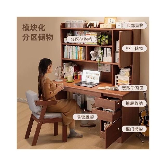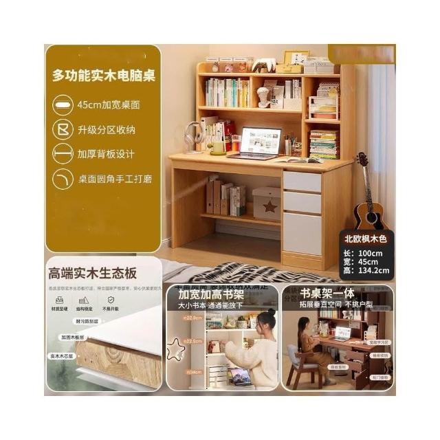 匠俱實木書桌書架一體 桌子 學生學習桌 寫字桌 家用電腦桌 辦公桌