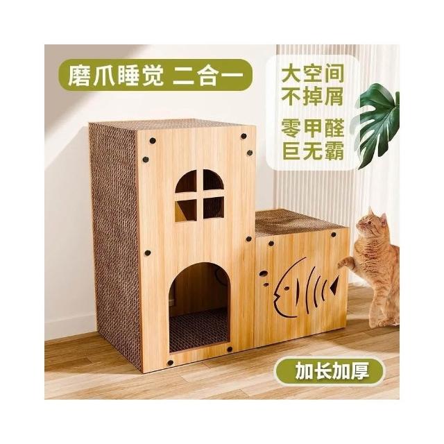 貓抓板 立式貓抓板貓窩一體 別墅雙層階梯貓屋 耐磨瓦楞紙貓房子 貓爬架玩具