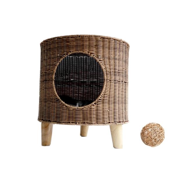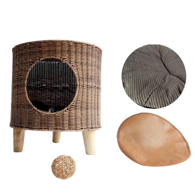 貓窩 藤編夏季透氣窩 寵物窩防潮 半封閉 貓咪窩 貓籠 貓咪用品 四季通用