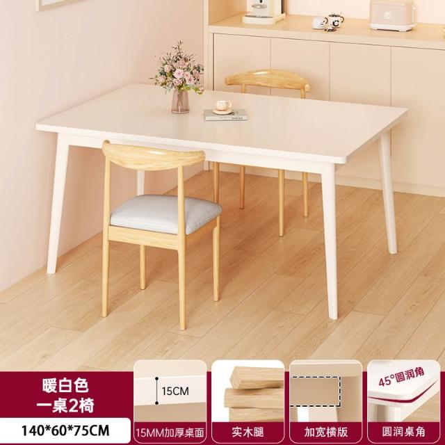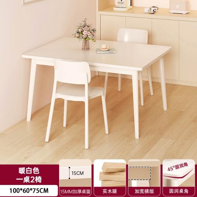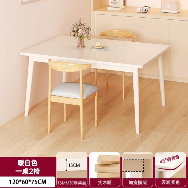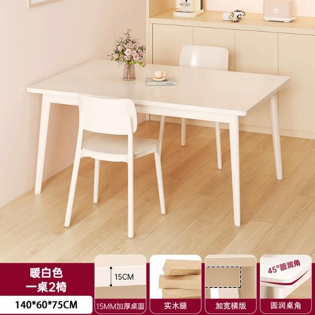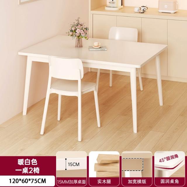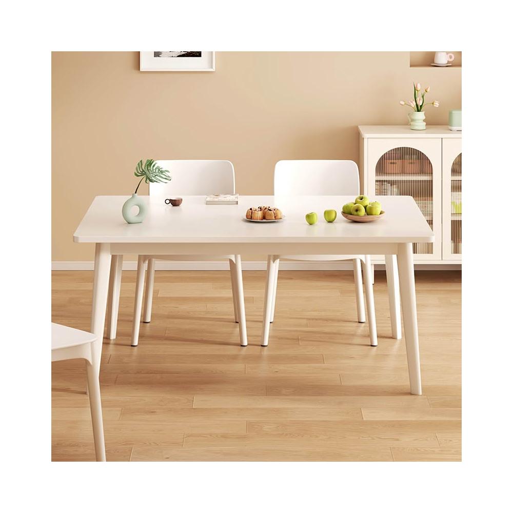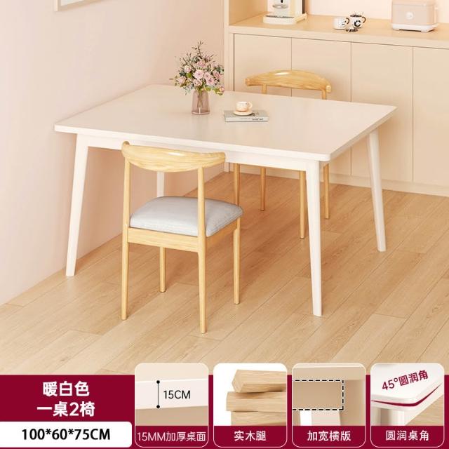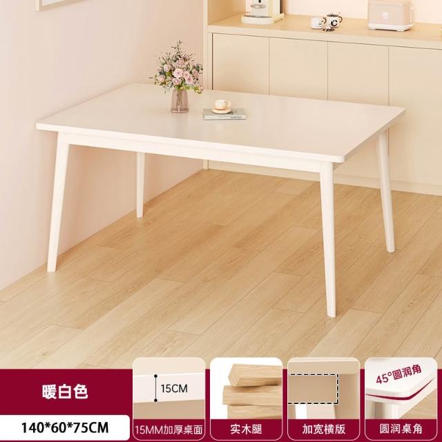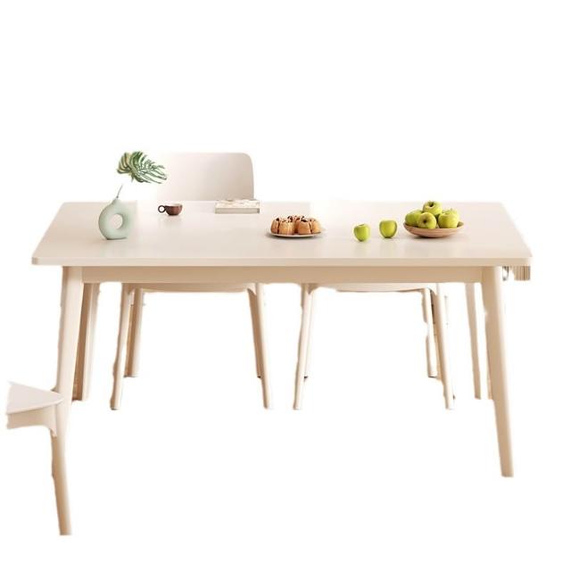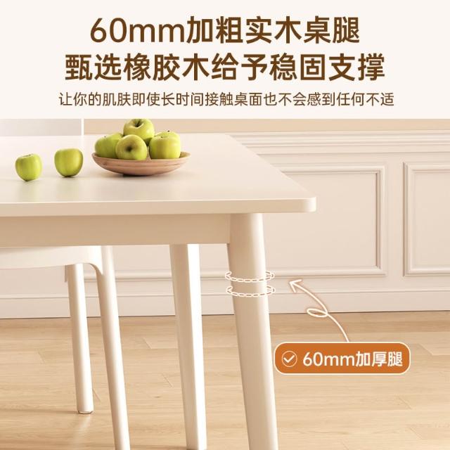 匠俱餐桌 法式奶油風白色 簡約現代小户型 家用長方形加厚实木腿 吃饭桌子 省空間設計