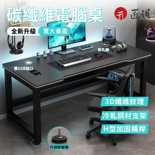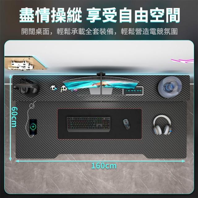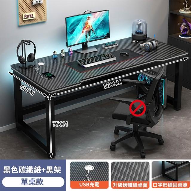 匠俱160cm碳纖維電腦桌 帶桌面雙USB充電孔(電競桌 遊戲桌 工作桌 書桌 學習桌)