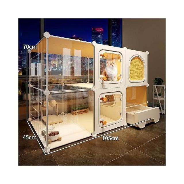 全景貓別墅 超大自由空間 貓廁所一體貓籠子 一室一廳一衛 帶貓砂盆貓鏟(貓別墅 貓窩 貓屋)