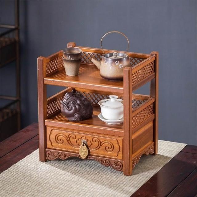 新川 新中式桌面博古架 實木茶具置物架 多層茶葉收納架 小型紫砂壺擺放架