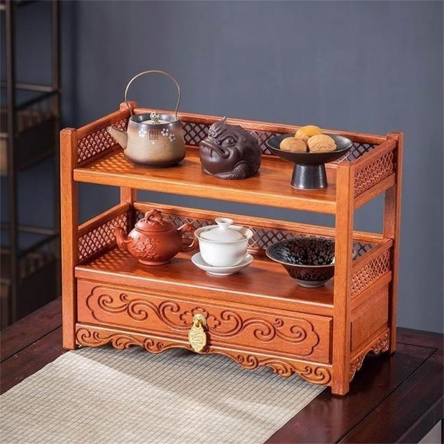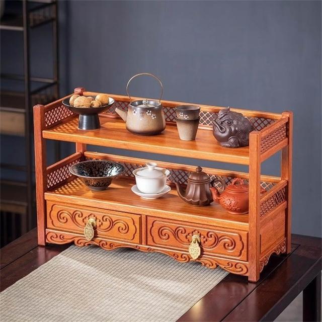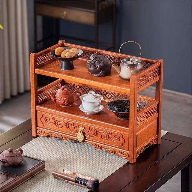 新川 新中式桌面博古架 實木茶具置物架 多層茶葉收納架 小型紫砂壺擺放架