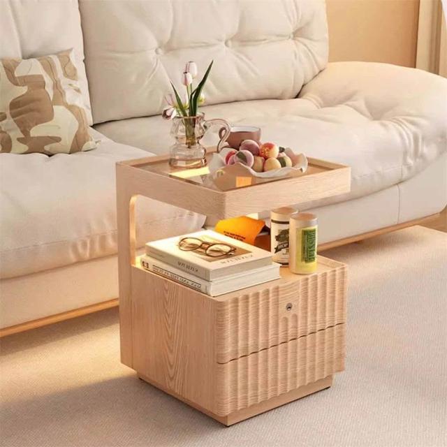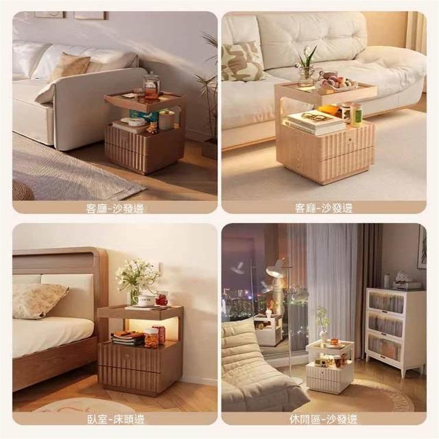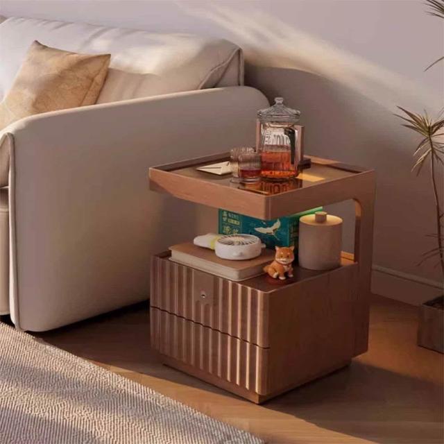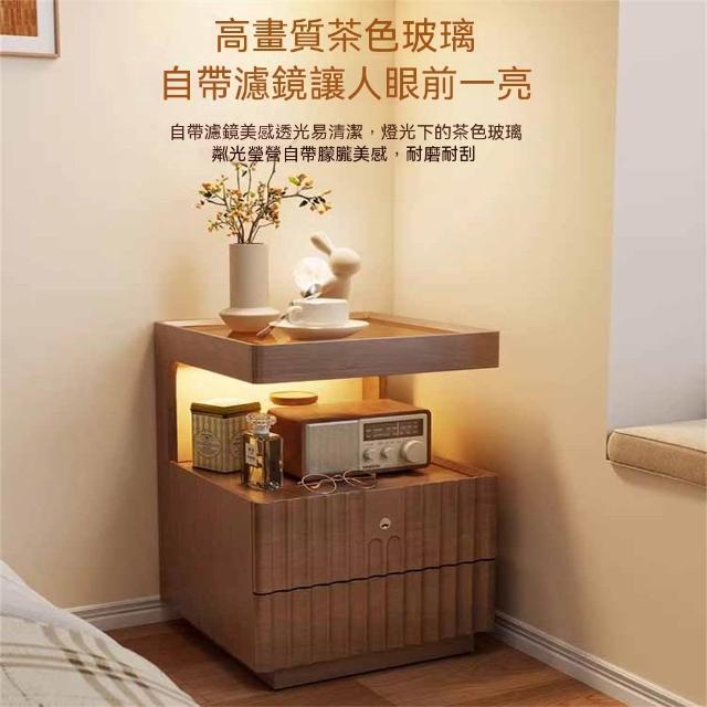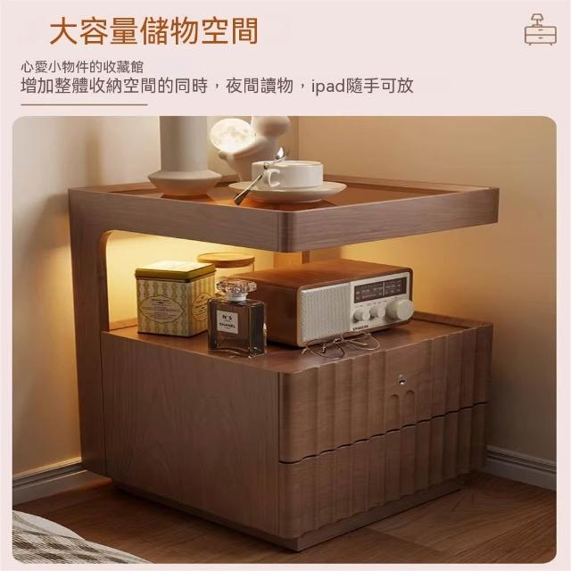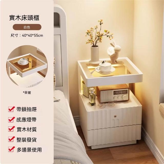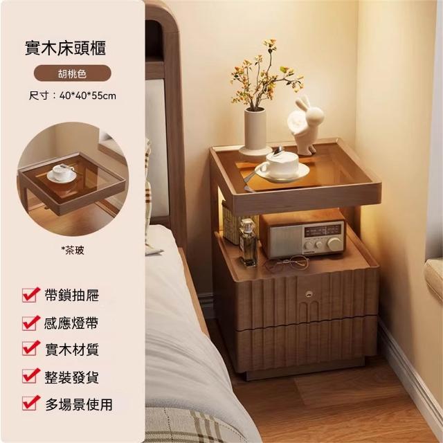 新川 實木床頭櫃 簡約現代 家用 臥室帶鎖儲物櫃 小型床邊置物架 簡易收納櫃