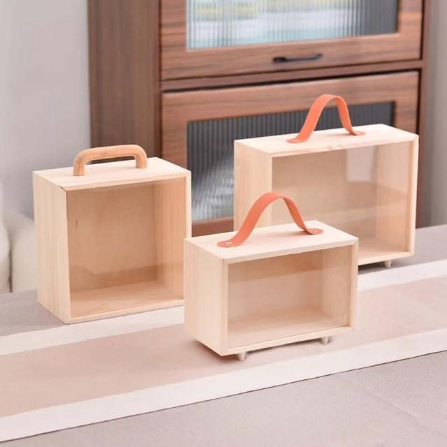 可提木質收納盒-小號皮提手 (展示盒 收納盒 置物盒 小木盒 包裝盒 伴手禮盒 乾花盒 永生花 手作 DIY用 木箱)