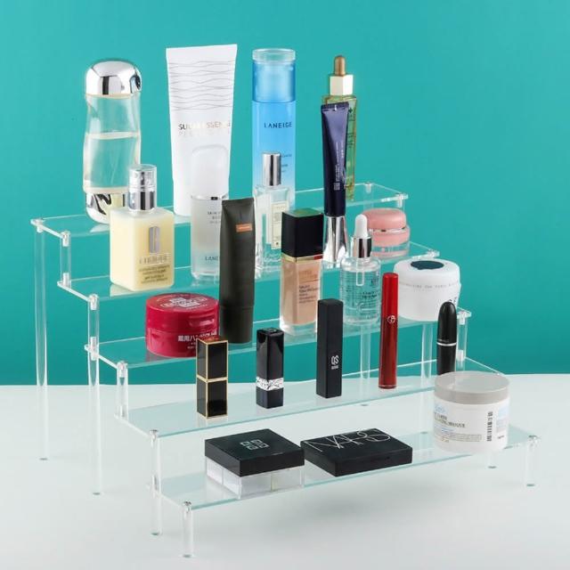 壓克力展示架-黑色三層-中號寬版(展示架 花架 收納架 置物架 階梯架 桌面收納 層架 飾品展示 擺攤)