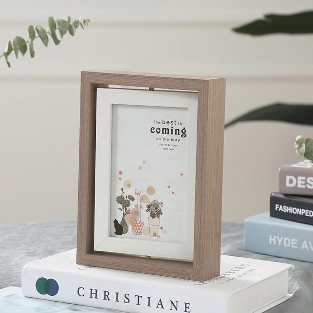 BlueCat木質旋轉相框-7吋(裱框 擺台 擺飾 玻璃相框 展示框 相片框 照片框 木相框)