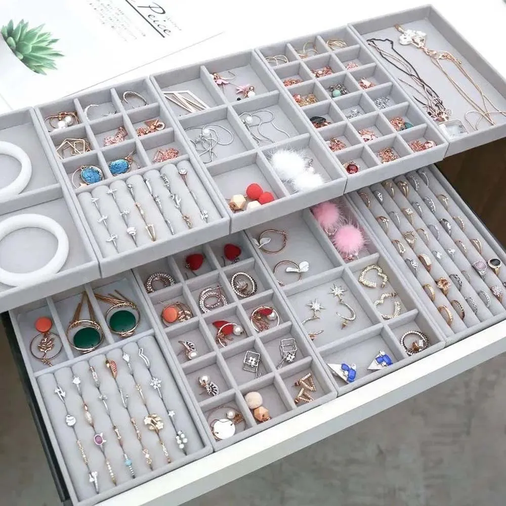 植絨首飾收納盒-小號 (首飾盒 飾品收納盒 收納盤 櫥窗展示 分類整理 戒指盒 耳環盒 項鍊盒)