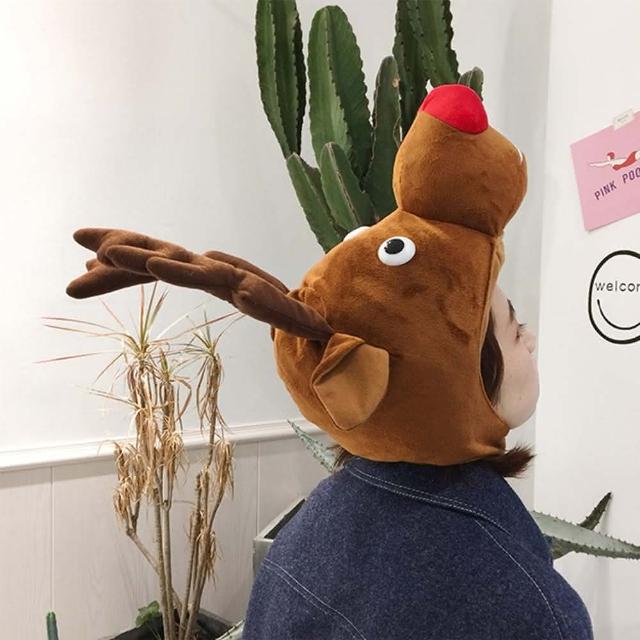 聖誕紅鼻麋鹿頭套 (頭飾 帽子 面罩 面具 拍照道具 寫真 派對裝扮)