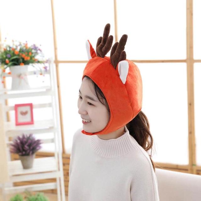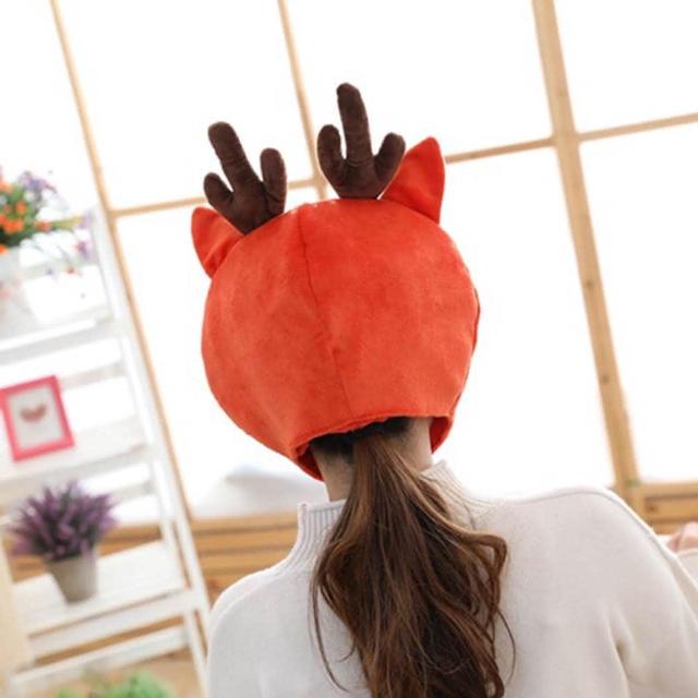 小角紅麋鹿頭套 (頭飾 帽子 面罩 面具 拍照道具 寫真 派對裝扮)