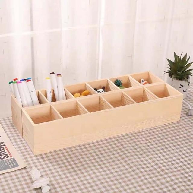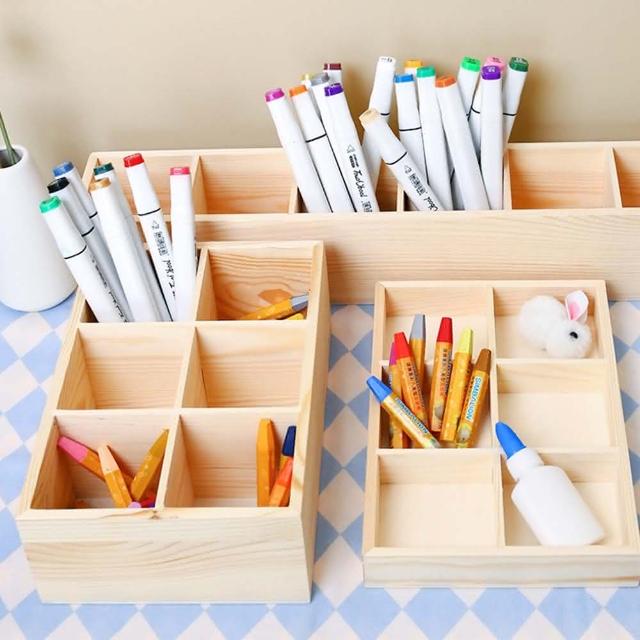 BlueCat六格收納木盒-低款(精油盒 蠟筆盒 收納盒 筆筒 筆架 多肉盆栽 分隔收納 辦公事務 居家收納)