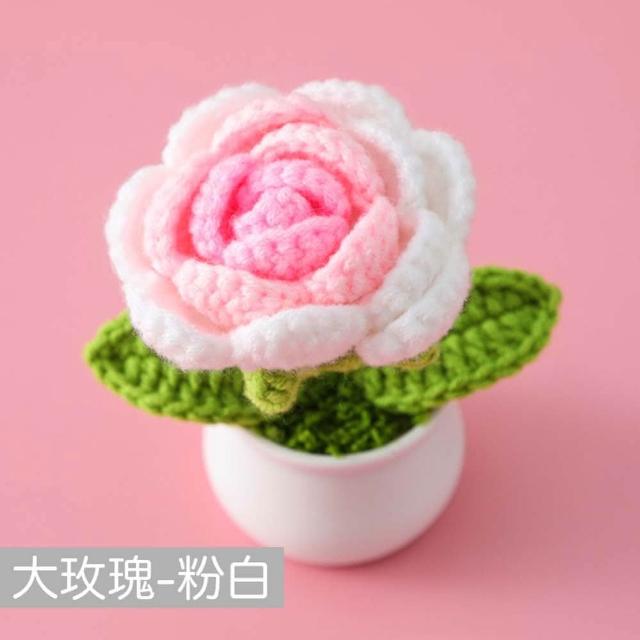 針織毛線花小盆栽(編織花 毛線花 手工盆栽 迷你 針織花 裝飾擺件 情人節 母親節 鬱金香 玫瑰)