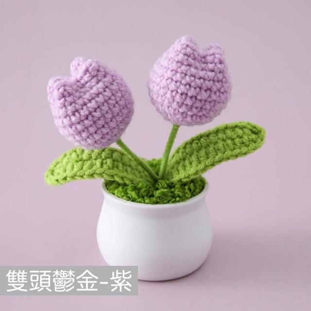 針織毛線花小盆栽(編織花 毛線花 手工盆栽 迷你 針織花 裝飾擺件 情人節 母親節 鬱金香 玫瑰)