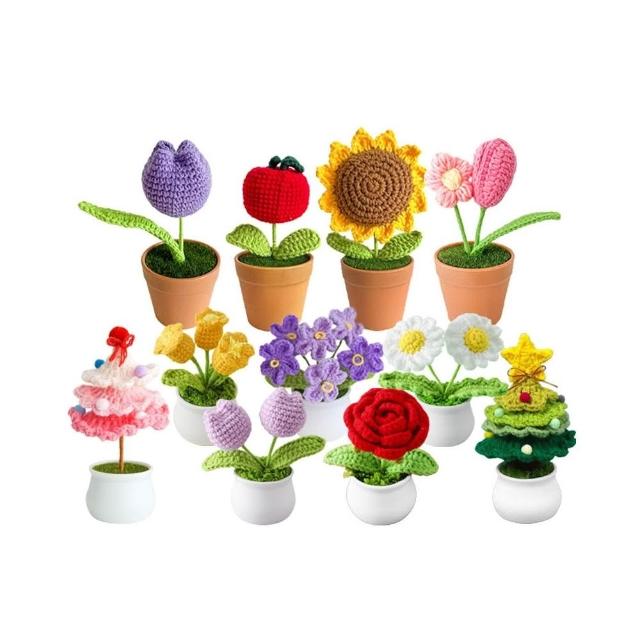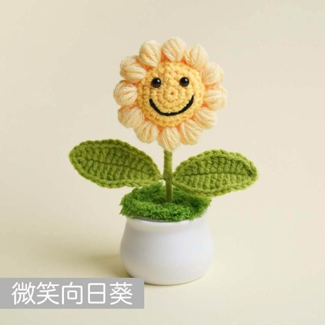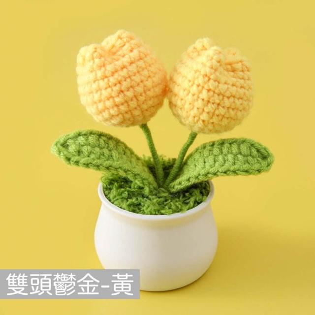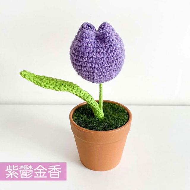 針織毛線花小盆栽(編織花 毛線花 手工盆栽 迷你 針織花 裝飾擺件 情人節 母親節 鬱金香 玫瑰)