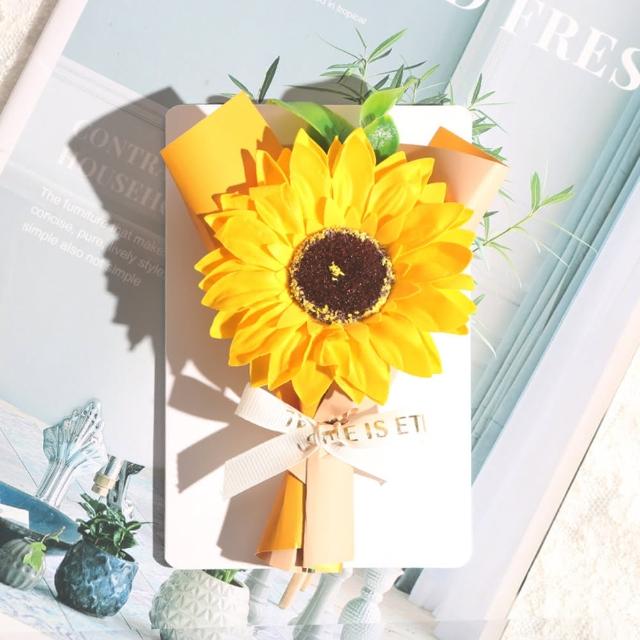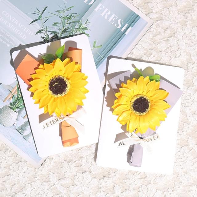 BlueCat向日葵花束祝福卡片(母親節卡片 香皂花 賀卡 感謝卡 禮物卡 禮盒卡 祝福卡 明信片)
