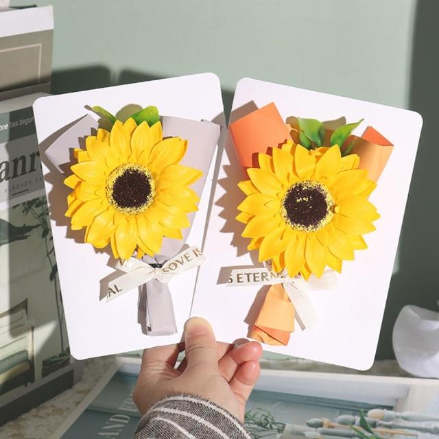 BlueCat向日葵花束祝福卡片(母親節卡片 香皂花 賀卡 感謝卡 禮物卡 禮盒卡 祝福卡 明信片)