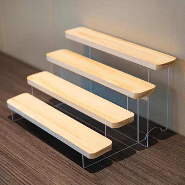 BlueCat木質平板展示架-三層30cm(展示架 花架 收納架 置物架 階梯架 桌面收納 模型公仔 層架 飾品展示 擺攤)