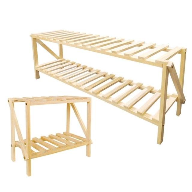 BlueCat雙層園藝置物架-小號(木架 收納架 置物架 層架 展示架 多層 多肉盆栽架 桌面整理)
