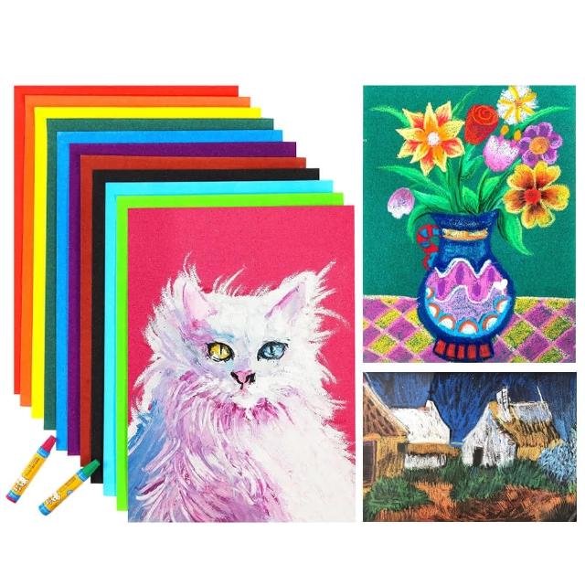 BlueCat繪畫彩砂紙10張入(16K 砂卡紙彩砂紙 彩色砂畫紙 美術紙 圖畫紙 油畫棒 蠟筆 粉筆繪畫)