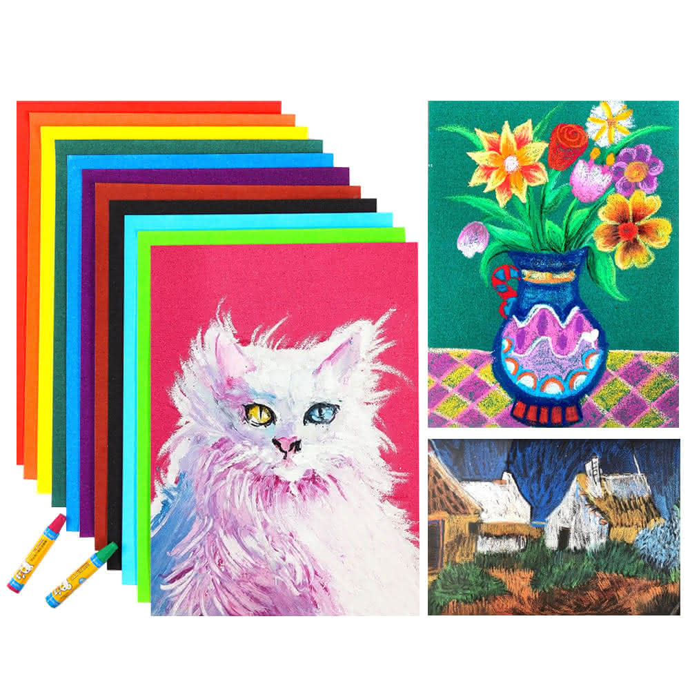 BlueCat繪畫彩砂紙10張入(16K 砂卡紙彩砂紙 彩色砂畫紙 美術紙 圖畫紙 油畫棒 蠟筆 粉筆繪畫)