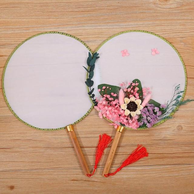 DIY空白絹布大團扇(彩繪扇古風 團扇 手工藝 竹扇 圓形 扇子 刺繡扇子 宮扇 宮廷 古典扇)