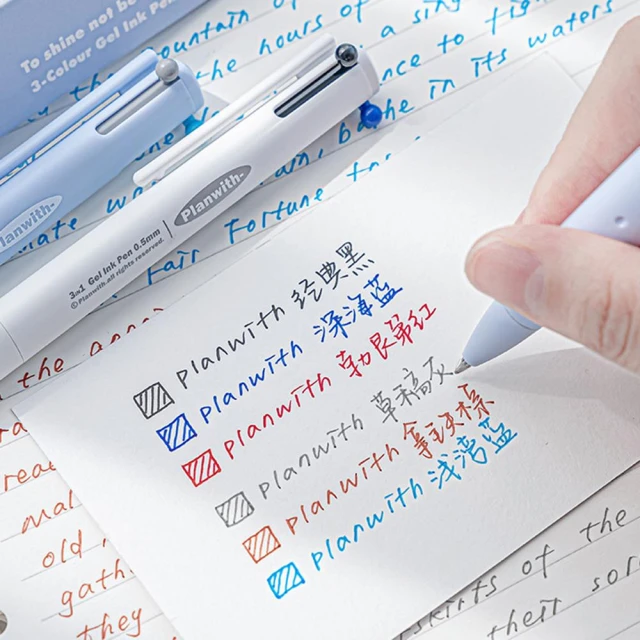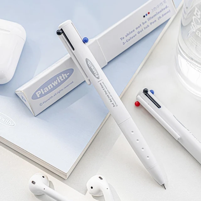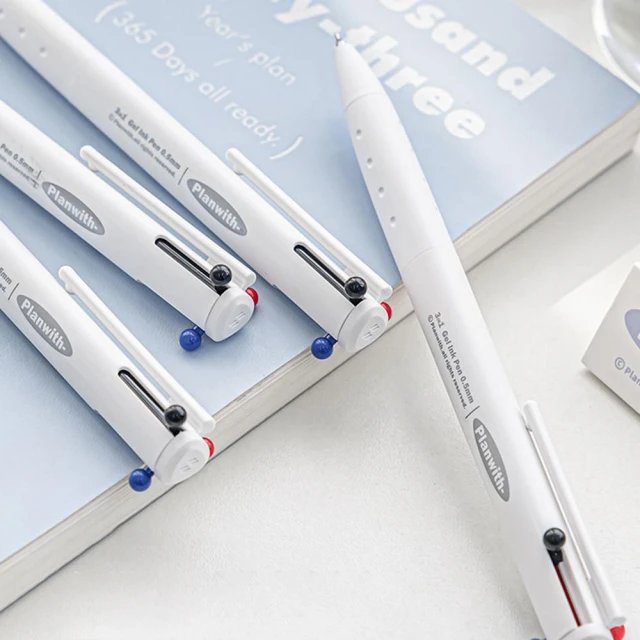 按壓三色中性筆(三色筆 中性筆 多色筆 按壓筆 按動筆 原子筆 手帳筆 考試用筆 辦公文具)