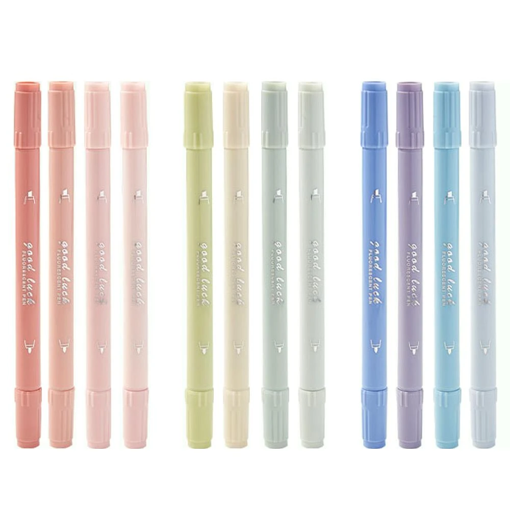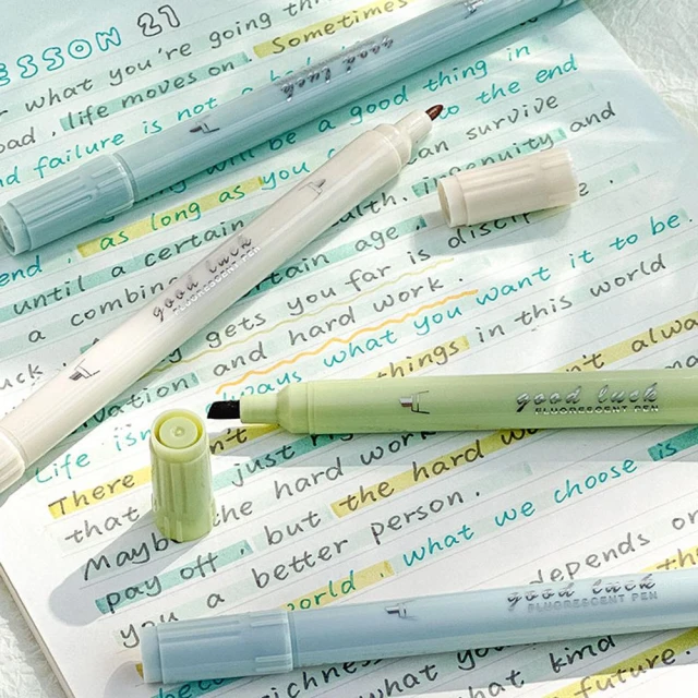 BlueCat雙頭螢光筆4色套組(漸變色 螢光筆 記號筆 彩繪筆 手帳筆 重點標記 文具筆)