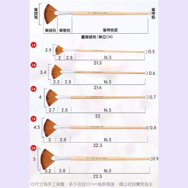 雙色扇形畫筆5入組 (畫筆 刷具 水彩筆 尼龍毛 原木桿 魚尾扇形 手繪筆 水粉筆 油畫筆 彩繪筆 開學季)
