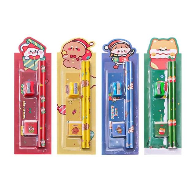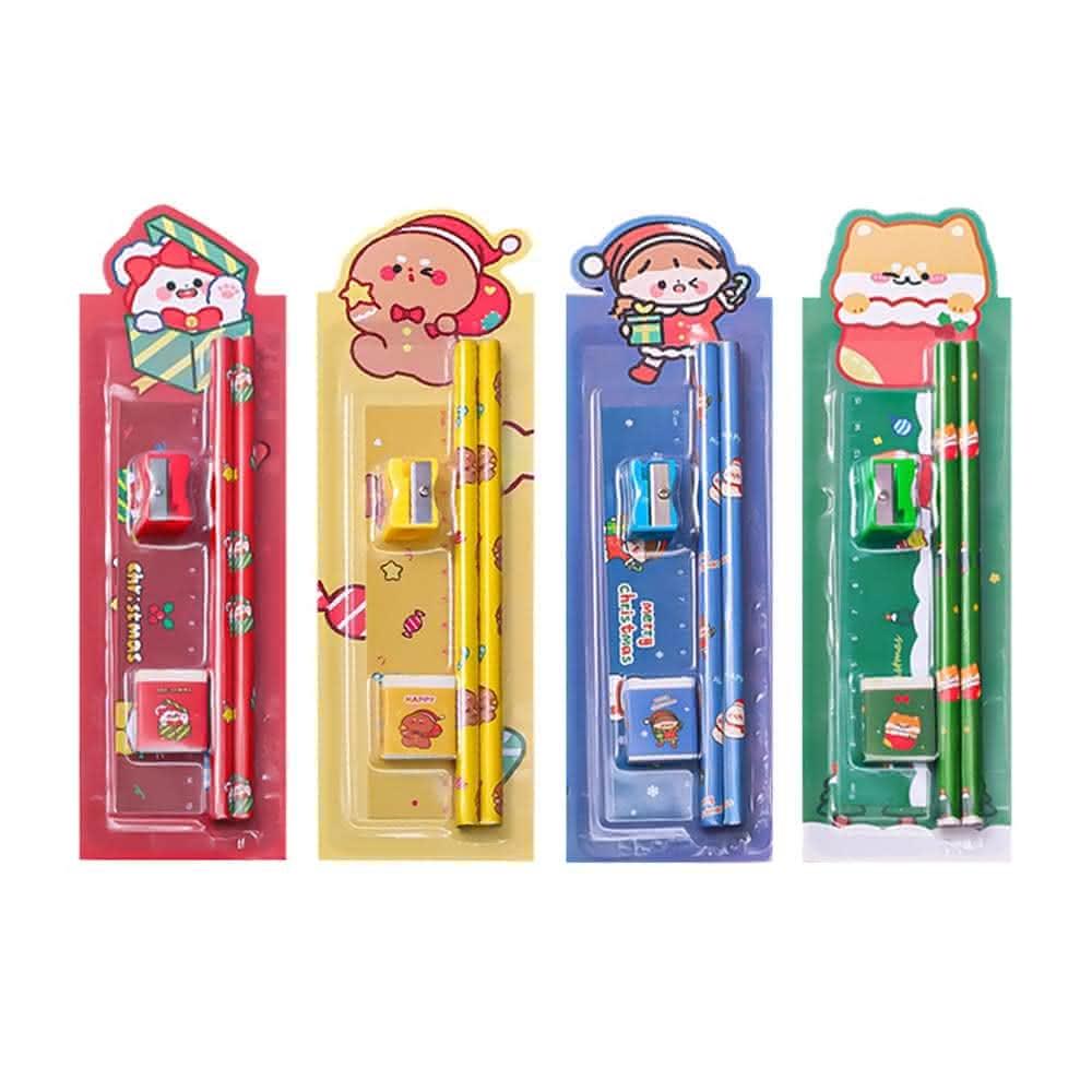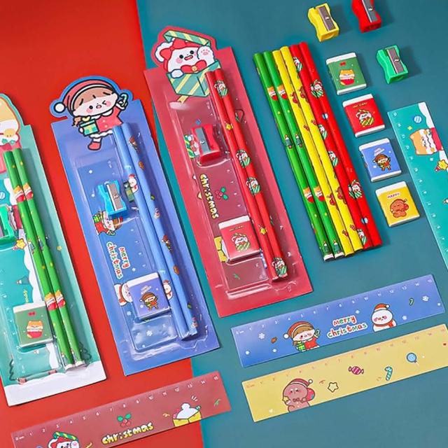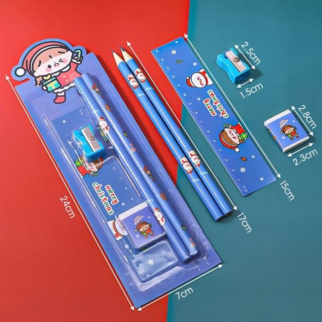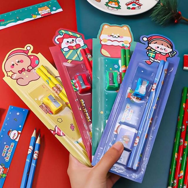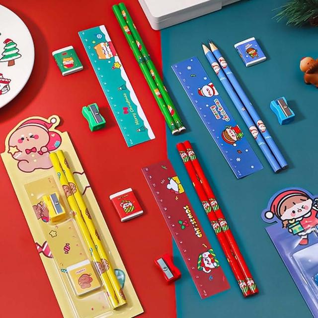 聖誕文具五件套組 (鉛筆 橡皮擦 尺子 削筆器 鉛筆套組 耶誕節 聖誕節 文具小物 開學季)