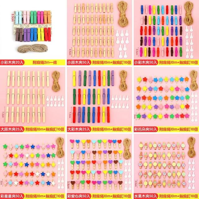 小木夾+麻繩套組 (小木夾 小夾子 木夾 手作材料 照片夾 照片牆 相片固定 創意書籤 事務用品)