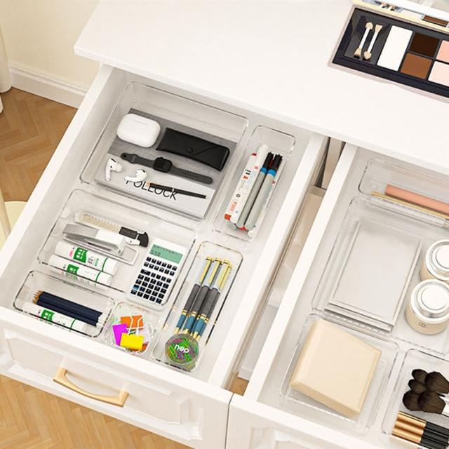 透明桌面收納盒-大號長形 (置物盒 透明盒 塑膠盒 分類盒 桌面收納 抽屜整理 文具盒 組合收納盒)