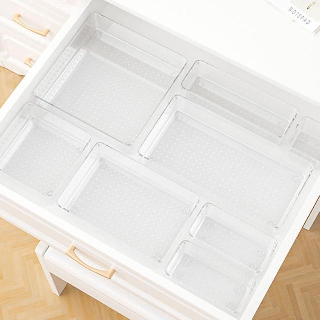 透明桌面收納盒-大號長形 (置物盒 透明盒 塑膠盒 分類盒 桌面收納 抽屜整理 文具盒 組合收納盒)