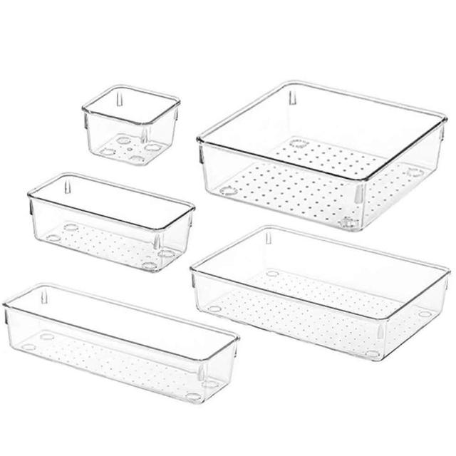 透明桌面收納盒-大號方形 (置物盒 透明盒 塑膠盒 分類盒 桌面收納 抽屜整理 文具盒 組合收納盒)