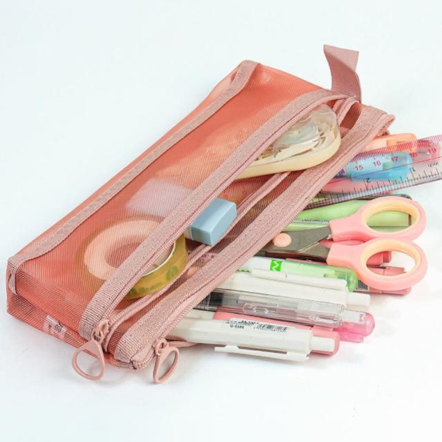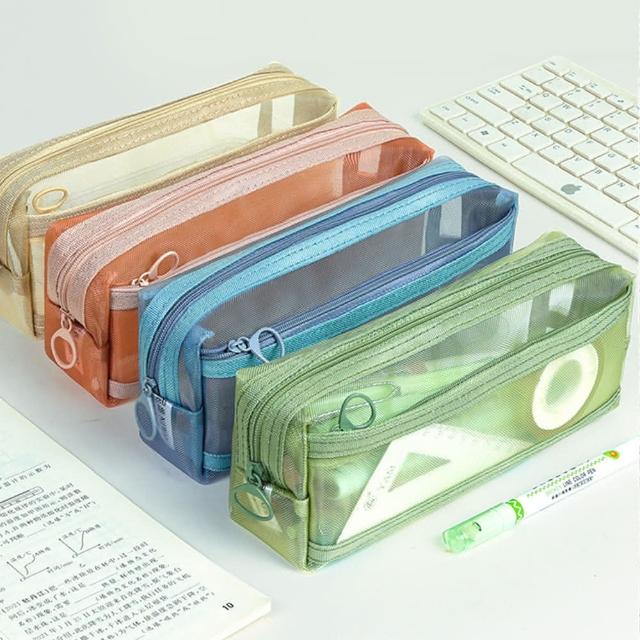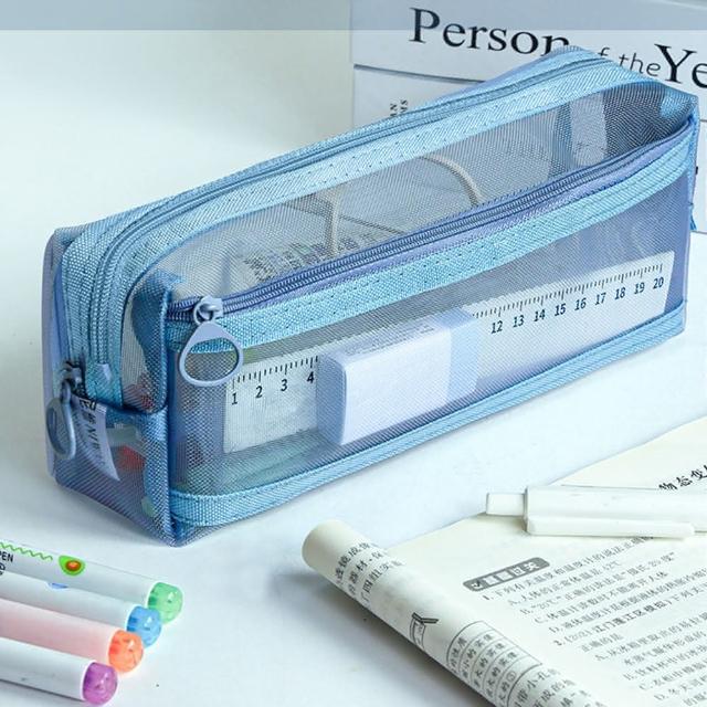 網紗收納鉛筆袋(筆袋 鉛筆袋 鉛筆盒 收納袋 網袋 文具袋 大容量 雙層筆袋 筆盒 開學季)
