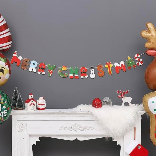 聖誕節派對旗幟(拉花 旗子 掛旗 旗幟 活動佈置 教室 居家 商店 裝飾擺飾 吊旗 掛飾 耶誕節)