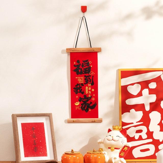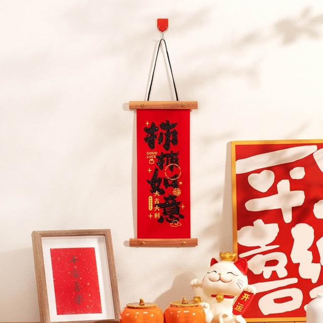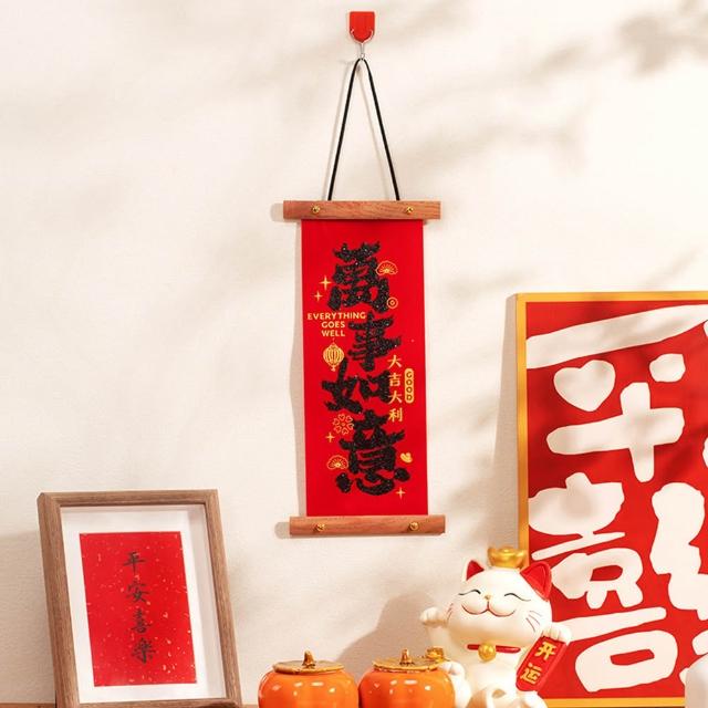 新年卷軸小春聯 (新年春聯 卷軸春聯 植絨春聯 捲軸 掛飾 掛軸 畫軸 玄關大門 牆面裝飾 掛件 吊飾 農曆年 新年)