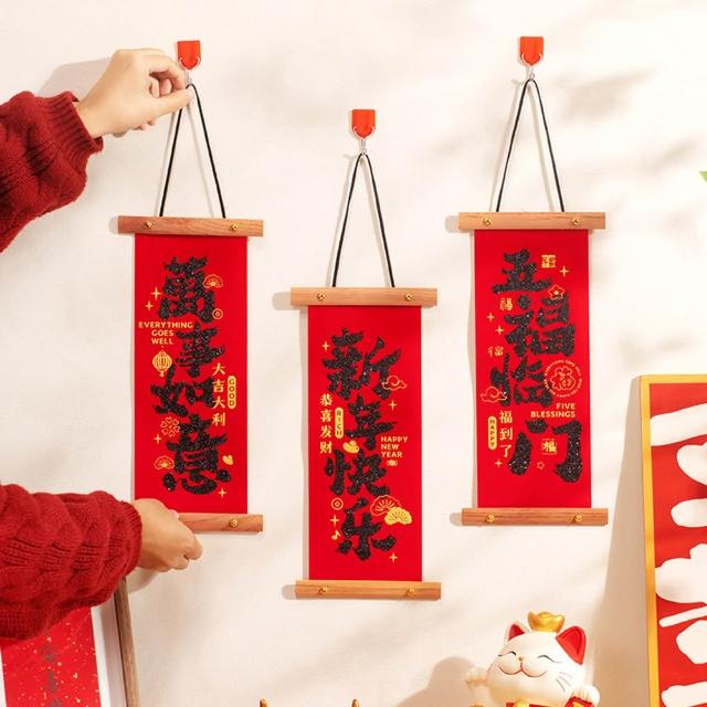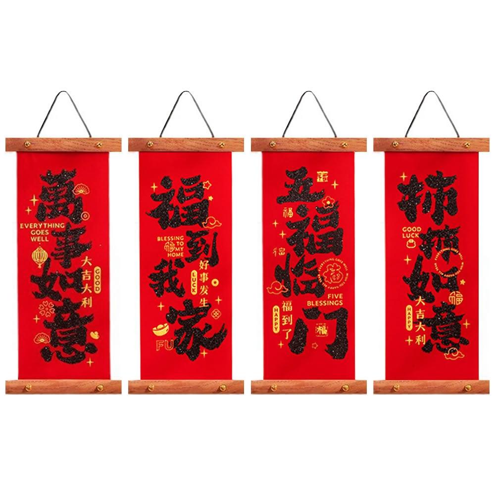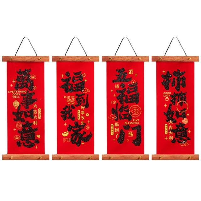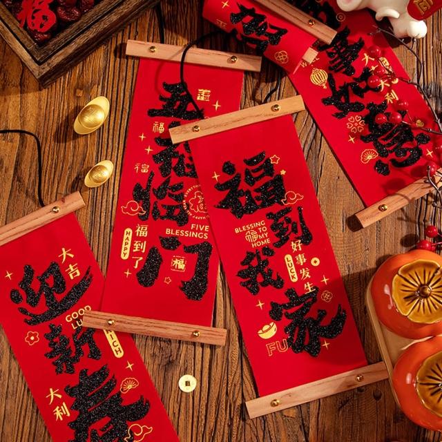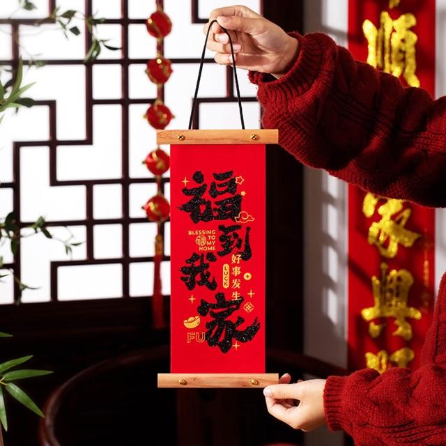 新年卷軸小春聯 (新年春聯 卷軸春聯 植絨春聯 捲軸 掛飾 掛軸 畫軸 玄關大門 牆面裝飾 掛件 吊飾 農曆年 新年)